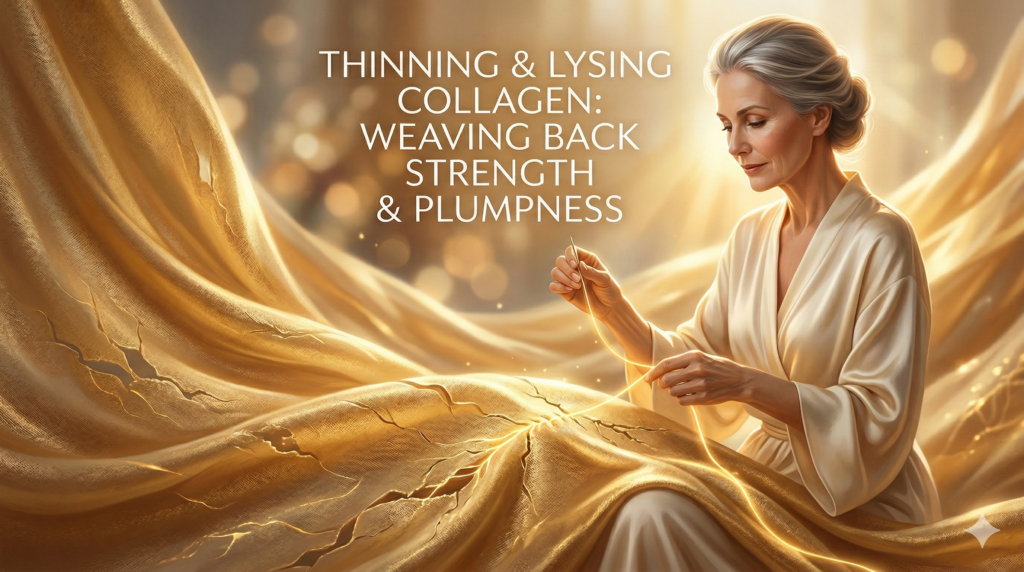 Skin becomes measurably thinner as estrogen drops. Dermal thickness decreases, the fat pads beneath the skin shift and shrink, and the overall architecture supporting that youthful plumpness begins to reorganize. This isn’t just cosmetic — thinner skin is more vulnerable to damage, more reactive to actives, and heals more slowly from micro-injuries.